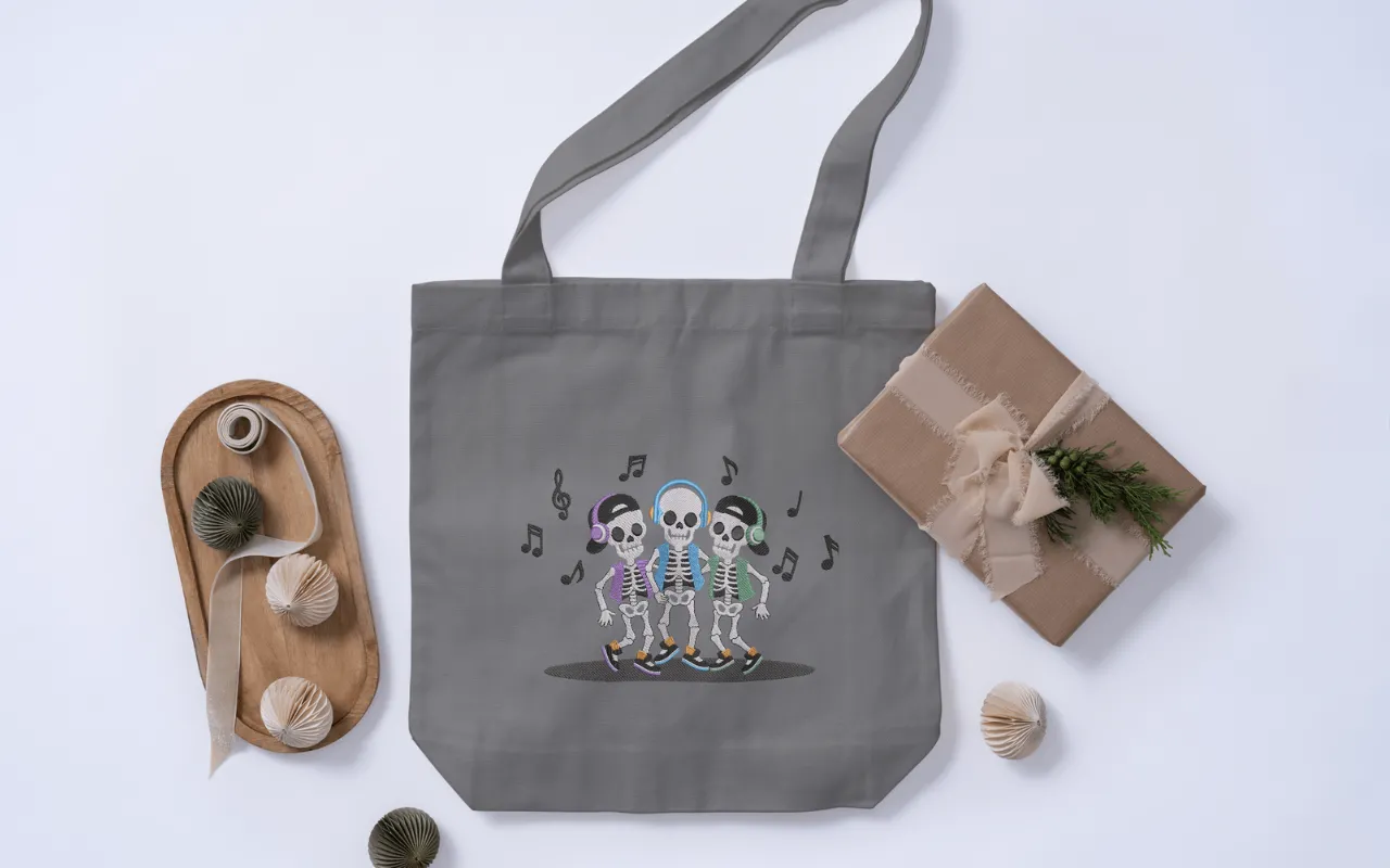 Get ready to add a funky twist to your projects with the Dancing Skeleton Trio Machine Embroidery Design Pattern! This vibrant design features three stylish skeletons grooving to the beat, complete with colorful vests, headphones, and sneakers. Perfect for Halloween-themed crafts, quirky apparel, or unique home decor, this eye-catching pattern is sure to stand out and delight your customers.
