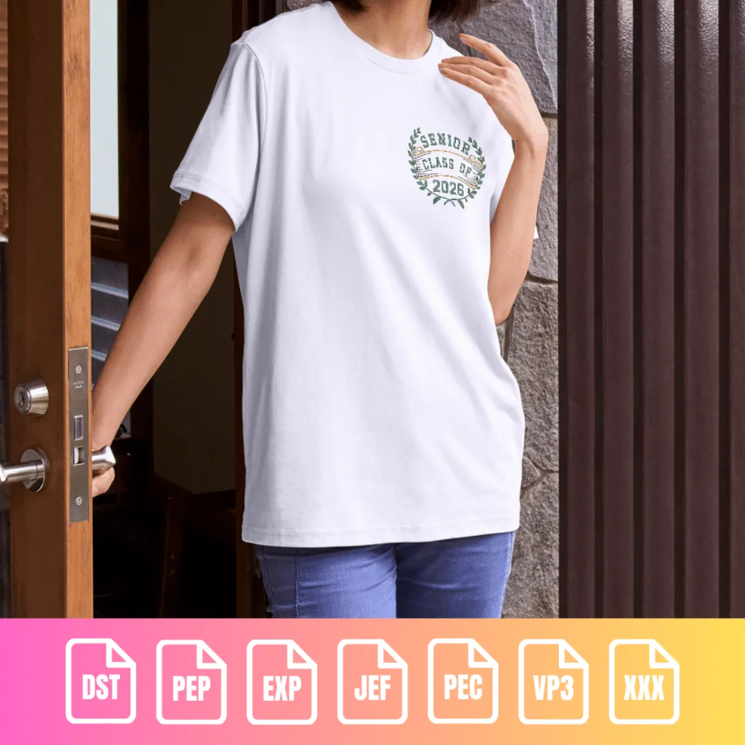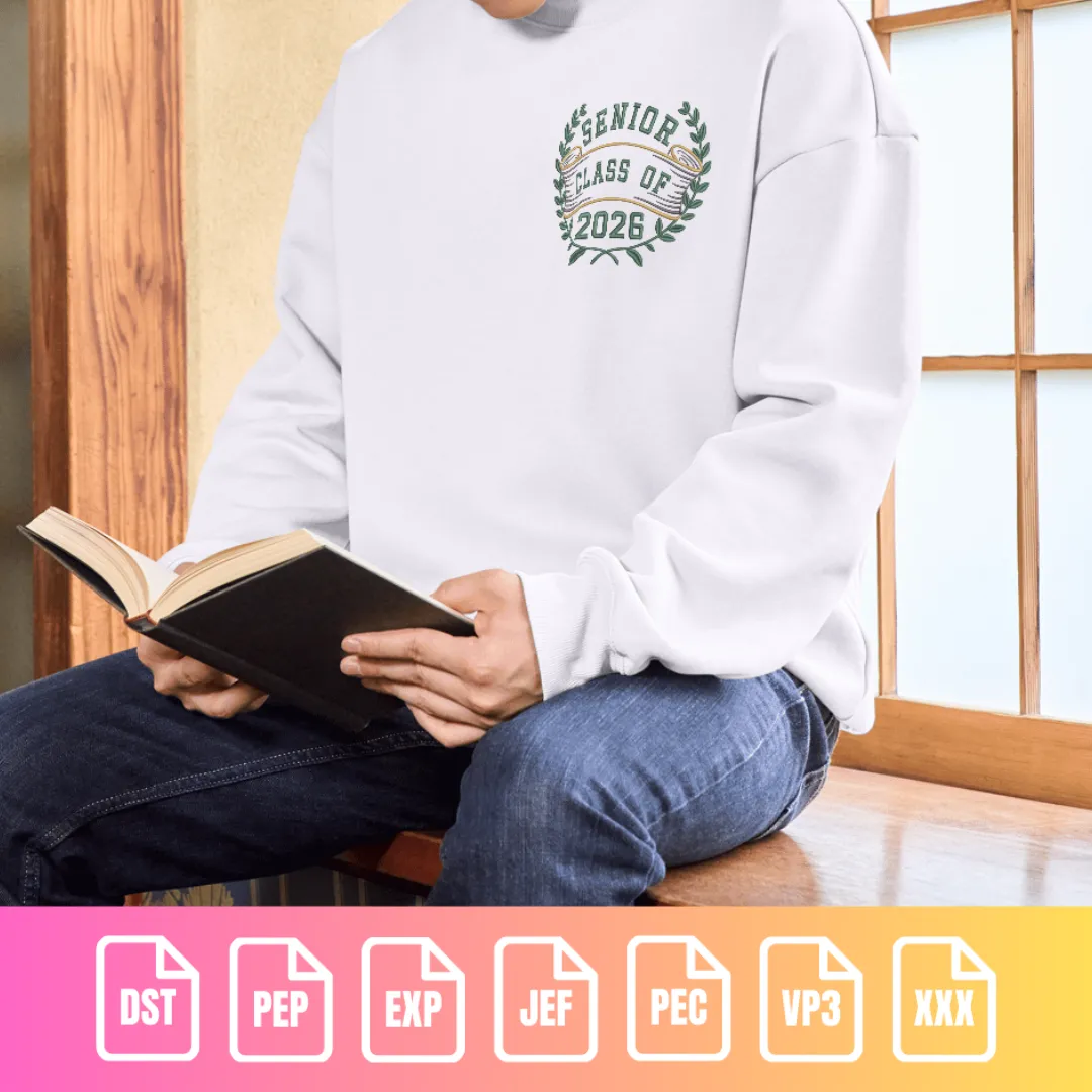 Elevate your graduation celebrations with our exquisite Senior Class of 2026 Floral Machine Embroidery Design Pattern! This elegant design showcases a stunning laurel wreath and ribbon banner, perfect for decorating caps, jackets, or keepsakes. Ideal for schools, graduates, and embroidery lovers, this pattern brings a touch of sophistication and pride to any project.